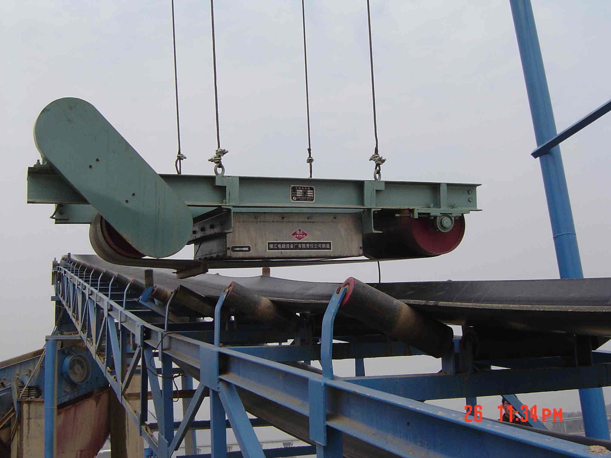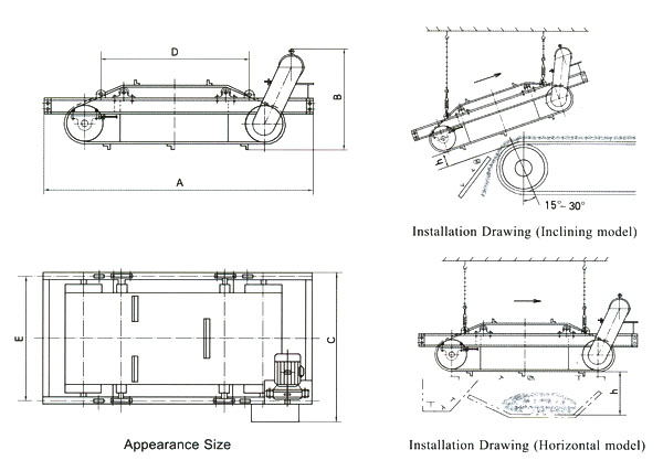 It is made up with permanent magnetic chip of robust performance, iron-discharging belt, reducer, frame and roller etc. and can match with all kinds of conveyors. It is used to eliminate the ferromagnetic material weighing from 0.1kg to 35kg .Inside we employ the computerized simulating run in the harsh environment for a long period.